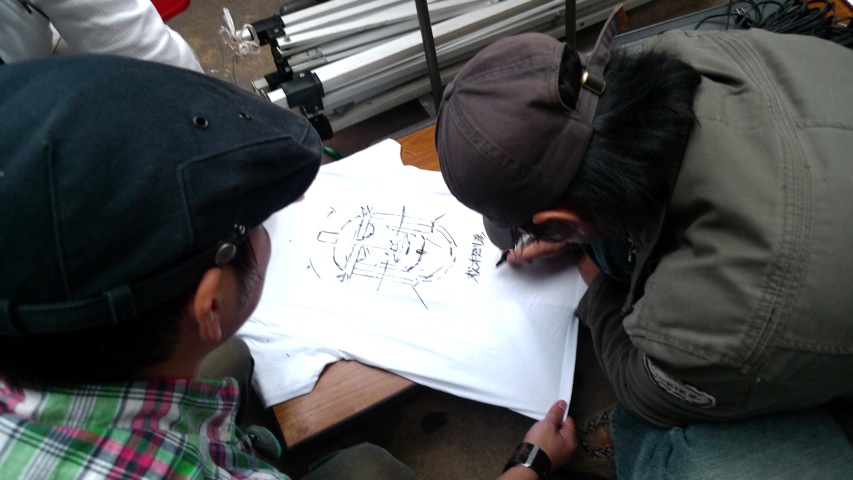 売れ残っていたカーメンマンTシャツを全部売り切る清水聖と松本監督。