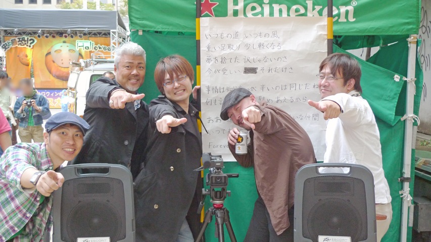 写真は撮影風景の一幕。左から清水聖、斧アツシ、上江洲誠、岸誠二、中村浩二郎(敬称略)。今、日本で最もボンクラなやつらだ!